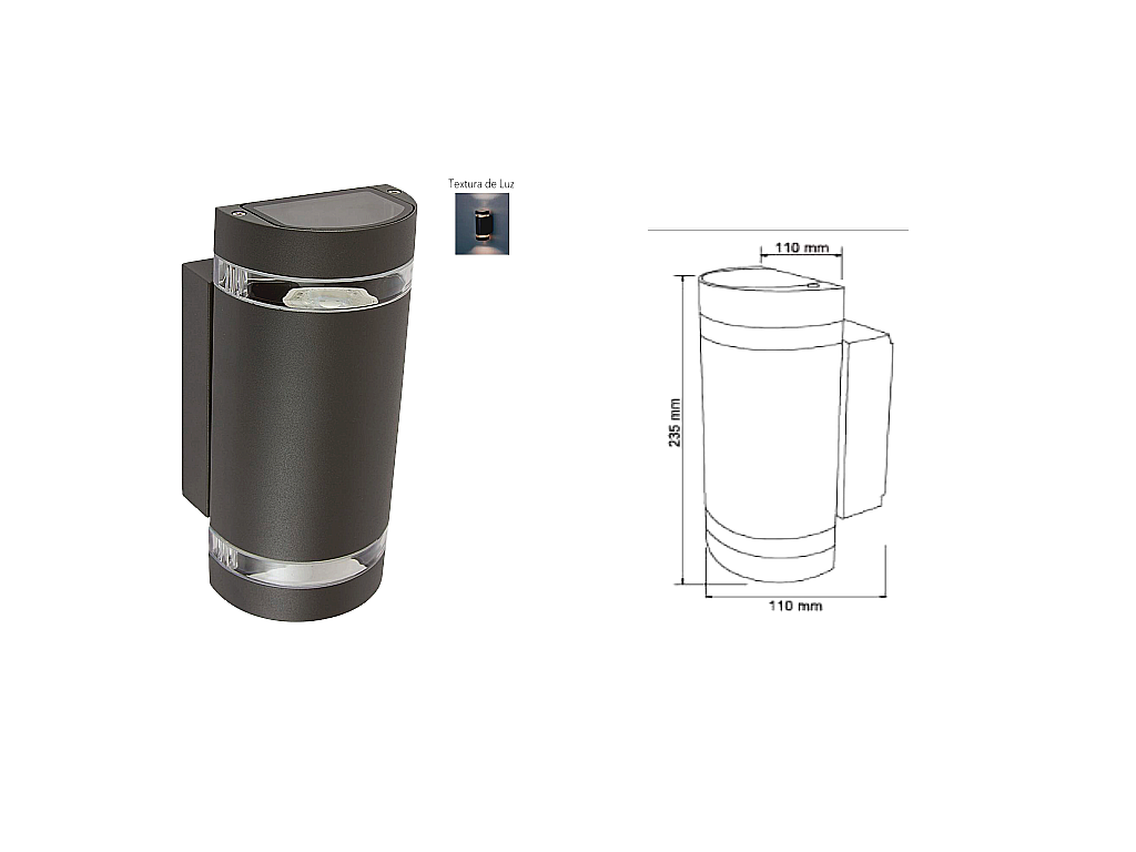 Descripción Modelo (s):H-1070/AN TOLEDO Consumo de potencia [W]:100 V-240 V~ 70 W 0°-40°C Base (portalámpara):Base rectangular Índice de Protección [IP]: Pantalla: Cristal Terminado: Negro mate Tensión Nominal [V~]:50 Hz/60 Hz SOBREPONER EN MURO PARAMETROS ELÉCTRICOS GU10 x 2 45 Certificación: NOM-064 Garantía: 1 AÑO Consumo de Corriente [A]: 0.70 A-0.29 A Frecuencia Nominal [Hz]:50 Hz/60 Hz Material de la carcasa: Aluminio